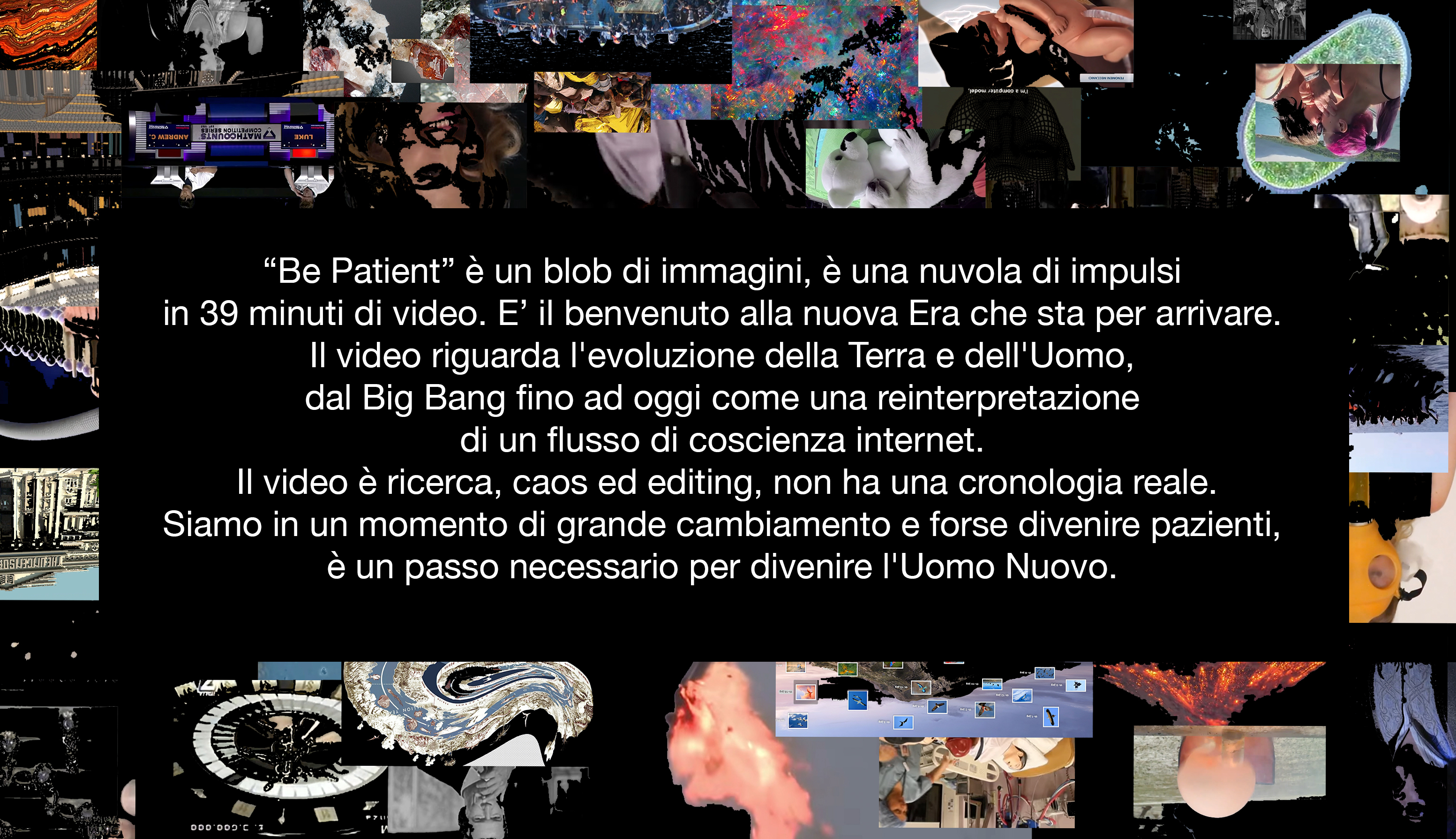 Be patient because we can do absolutely nothing apart from trying to become a new human being—and what is a new human being? The new human is the egg, not the chicken; it’s cmd-Z; a rhinestone crystal dating back to 4,4 billions of years ago; it’s informal; it’s oceancentric. So, what is the “new human being”? It’s the one greeting the others who weren’t patient.